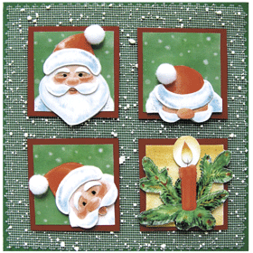 Комплектация: открытка из цветного картона, декоративная сетка «снег», помпоны, объемная и тонкая двухсторонняя клейкая лента (скотч), изображения Деда Мороза и праздничной атрибутики для изготовления картинок в 3-D технике, конверт, инструкция.