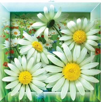 Ромашка – один из самых известных и любимых цветков, символ русской природы. Ромашка известна своими лекарственными свойствами, которыми наделила природа этот скромный, милый и приятный цветок. Каждый из нас в детстве пытался предсказать свою судьбу, обрывая лепестки у ромашки – «сбудется – не сбудется, любит – не любит…». При помощи набора «Ромашки» в технике аппликации можно изготовить декоративную картину, основой композиции которой будут ромашки.